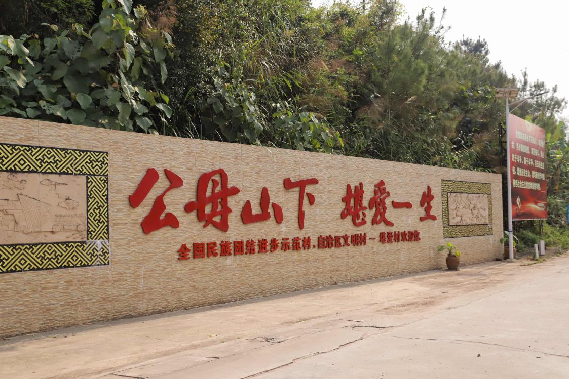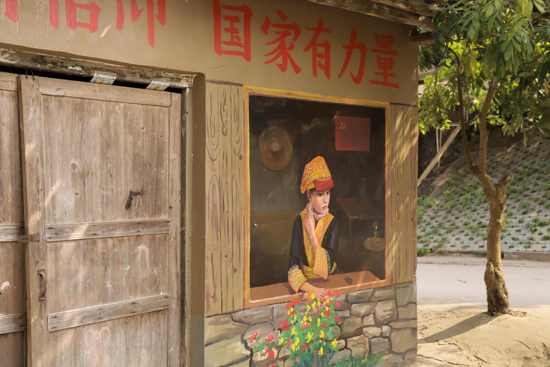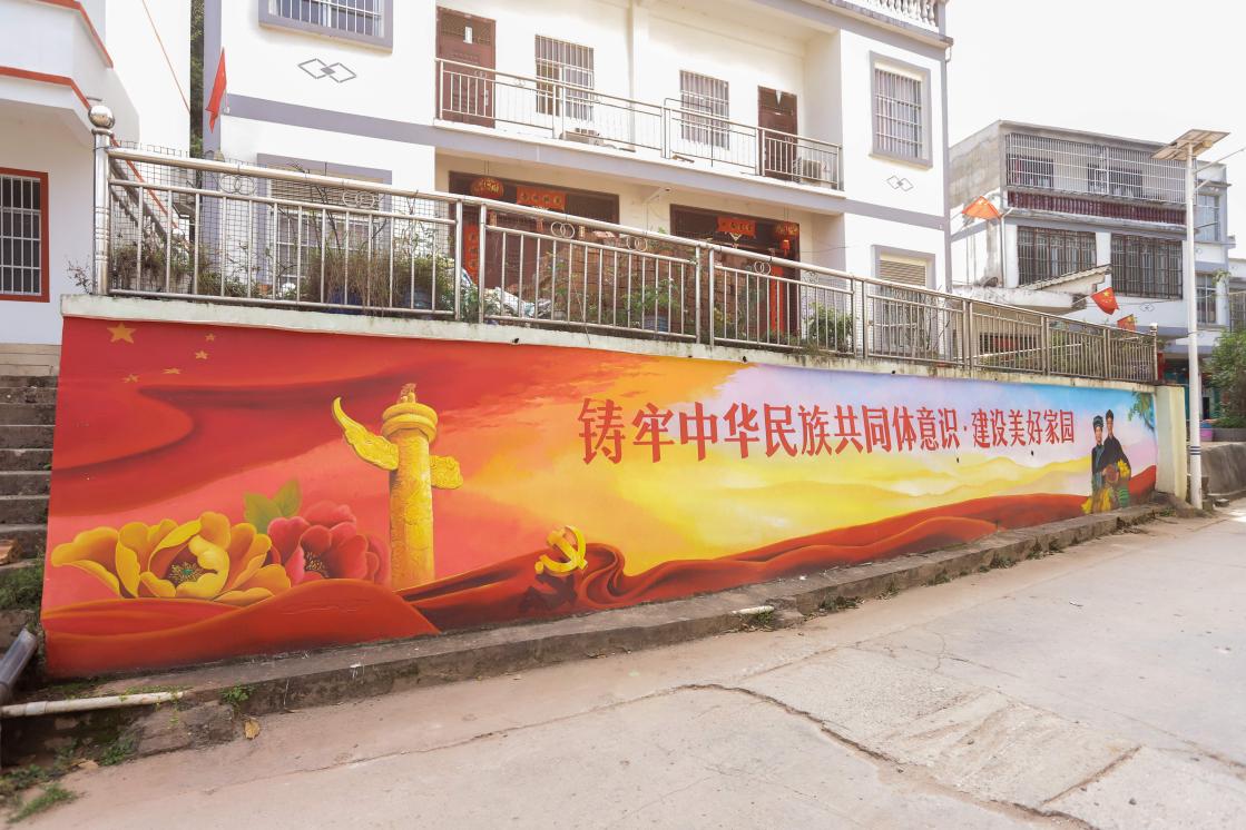 (图为堪爱村民族团结主题墙绘 覃亚菲/摄)