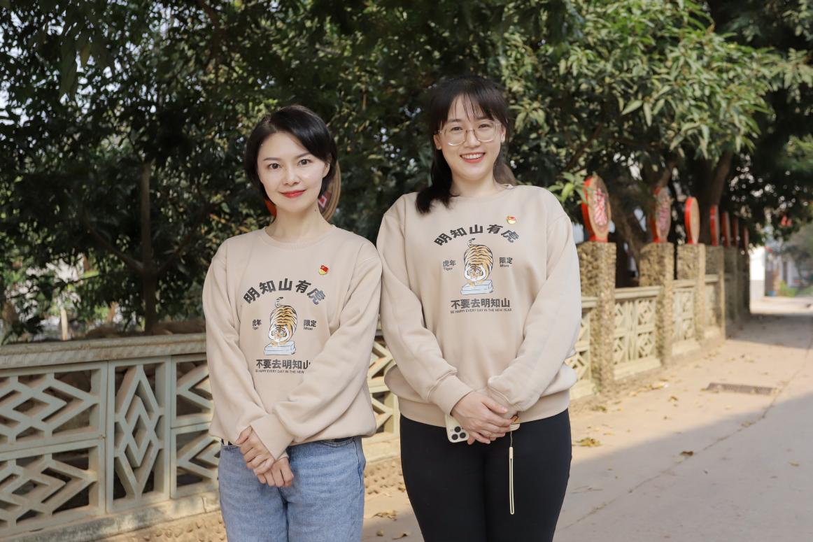 (图为堪爱村驻村第一书记王珊/左 驻村工作队员任婕/右 覃亚菲/摄)
