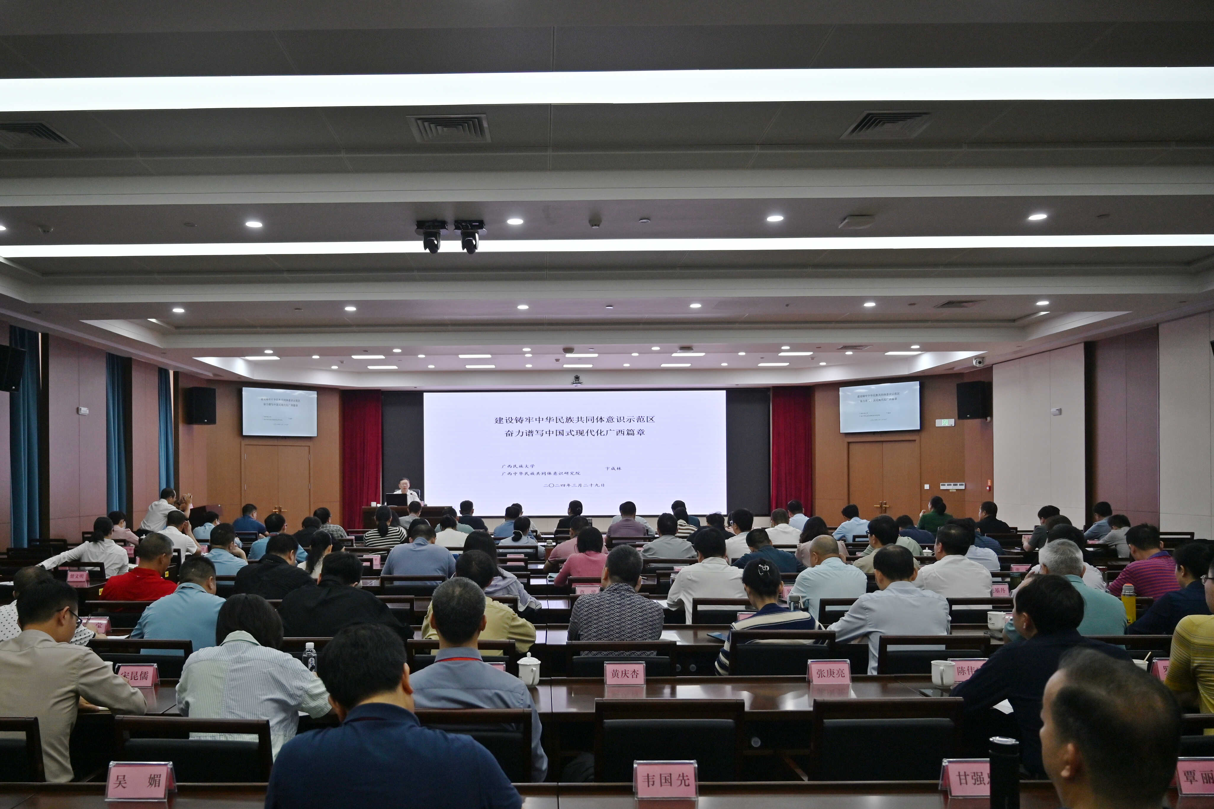 3月29日上午,广西民族大学党委书记、广西中华民族共同体意识研究院院长卞成林以“建设铸牢中华民族共同体意识示范区 奋力谱写中国式现代化广西篇章”为主题,为全区民宗系统干部铸牢中华民族共同体意识专题培训班(第一期)的学员进行专题授课。
