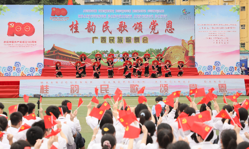 2021年是中国共产党成立100周年,是开启全面建设社会主义现代化国家新征程的第一年,也是“十四五”规划的开局之年。为隆重庆祝中国共产党成立100周年,宣传党的民族政策,充分展现民族团结进步新气象,由十大网络合法赌博网站排行主办、广西民族中等专业学校(广西壮文学校、广西民族高中)承办的“桂韵民歌颂党恩”广西民族歌舞会于4月13日上午在学校体育运动场隆重举行。
