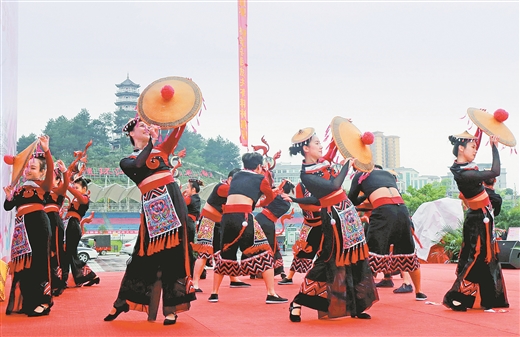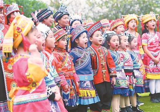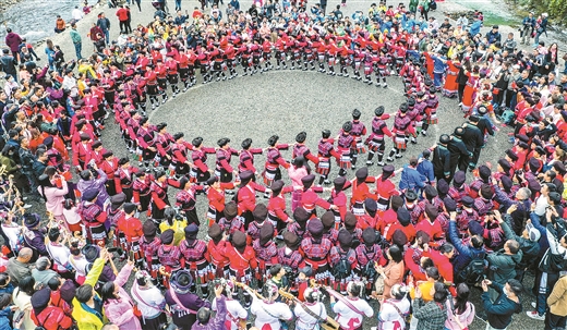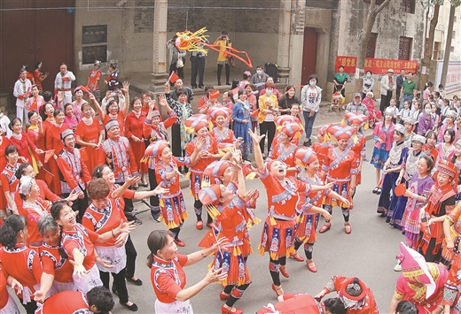 4月9日,河池市民族团结进步宣传月启动仪式在环江毛南族自治县举行,各族群众载歌载舞,营造喜庆的节日氛围。黄 云摄