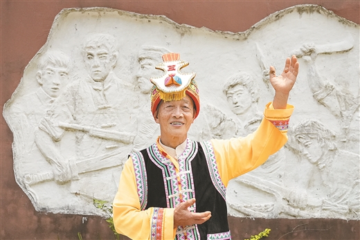 每逢一年一度的苗族跳坡节,他都上台展现他的山歌、乐器弹唱及歌舞,用歌舞来歌颂党的好政策和家乡日新月异的变化。