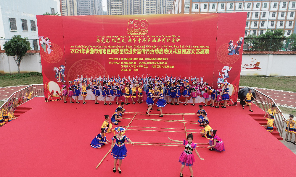 4月13日上午,由港南区委宣传部、区委统战部主办,区教育局、文体旅局、文联、共青团港南区委员会承办的2021年港南区“民族团结进步宣传月”活动启动仪式在港南区第一小学举行。仪式过后,精彩的民族文艺展演随之展开,港南区第一小学的老师和学生身着各式各样的民族服饰轮番上演精品歌舞,全方位展示港南区各族人民团结一心,听党话、感党恩、跟党走的时代风貌。在今年的民族团结进步宣传月活动中,港南区将围绕“感党恩 跟党走 铸牢中华民族共同体意识”主题,通过开展民族宗教政策法律法规知识网络有奖竞赛、民族团结进步宣传板报展、集中宣传推送讴歌中国共产党的系列作品、民族团结进步主题公益宣传片、海报、标语、民族文化作品等活动,引导各族群众铸牢中华民族共同体意识。