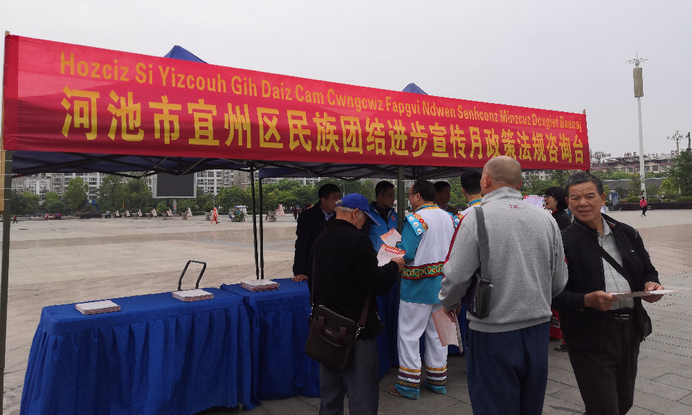 4月13日上午,2021年宜州区民族团结进步宣传月启动仪式在宜州区市民文化广场举行。通过悬挂系列宣传标语、发放民族政策法规宣传资料、搭建政策法规咨询台等方式,积极引导全区各族人民牢固树立“三个离不开”思想,增强“五个认同”,做到“两个维护”,促进各民族共同团结奋斗,共同繁荣发展。各民族像石榴籽一样紧紧拥抱在一起,不断增强各族群众对伟大祖国、中华民族、中华文化、中国共产党、中国特色社会主义的认同。在全区上下营造了平等、团结、互助、和谐的民族团结进步氛围。