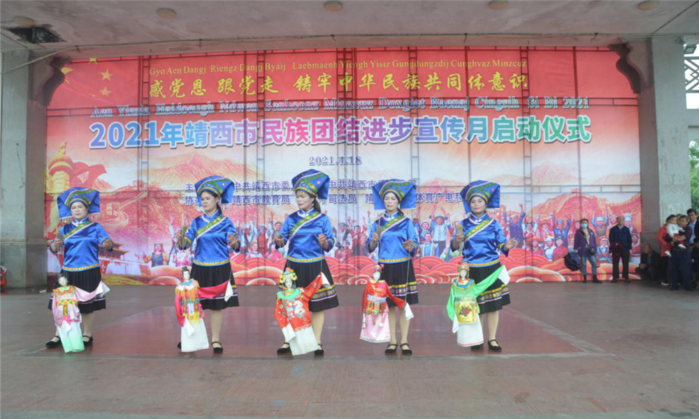 4月18日上午,靖西市2021年民族团结进步宣传月在靖西市中山休闲广场正式启动。活动以庆祝建党100周年和党史学习教育为契机,围绕“感党恩 跟党走 铸牢中华民族共同体意识”主题,通过宣传展板、发放宣传资料、观看专题片、开展民族体育抛绣球、唱山歌、民族文艺展演等形式,充分展示靖西市各族儿女团结奋斗,共同抗击疫情、决战决胜脱贫攻坚取得的成就,引导各族群众积极参与民族团结进步创建活动,铸牢中华民族共同体意识。据悉,靖西市在民族团结进步宣传月期间,将陆续通过参加百色市各县区民族团结专场文艺汇演、举办少数民族优秀电影展、推送广西民族团结进步主题公益宣传片、开展宗教政策法规宣传月活动、开展民族团结进步主题“十进”集中宣传、组织学校机关开展民族团结进步教育主题活动、开展民族文化教育实践、民族团结进步征文、民族法治文艺演出暨法治宣传、民族法治大篷车送法进基层、“法治山歌DOU来唱”抖音山歌赛、法律知识网络有奖竞答等十二大项活动,充分展示靖西壮族聚居区经济社会发展的优秀成果,推进民族团结进步宣传教育走深走实,团结带领全市各族人民增强“四个意识”、坚定“四个自信”、做到“两个维护”,不断铸牢中华民族共同体意识,营造庆祝中国共产党成立100周年的浓厚氛围。