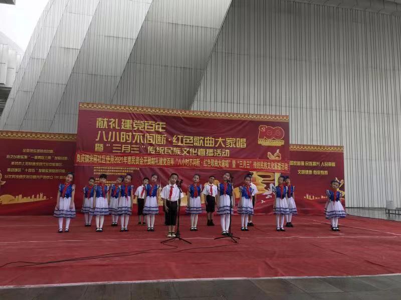 良庆区通过线上线下相结合的方式,广泛开展“壮族三月三”系列活动,内容比往年更丰富、形式更多样。4月10日,良庆区精心打造具有良庆特色的百人红歌线上“云对唱+云快闪”,在广西文化艺术中心、良庆区那马镇坛板坡、良庆区大塘镇太安村三个会场共聚欢唱,演唱优秀主旋律红色经典歌曲,进一步展现新时代良庆人民精气神,全城区干部群众上下一心,凝心聚力,以优异成绩迎接建党100周年。4月11日-13日,良庆区多个社区开展“壮族三月三”民族文化主题活动,丰富辖区居民文化生活,展示传统民族文化风采。辖区银海社区、银沙社区、金象社区、景华社区、三叠石社区、五象北岭社区、五象湖社区、良玉社区等社区组织各族群众开展丰富多彩的民俗文化体验活动,唱红歌、做绣球、同享五色糯米饭和艾叶糍粑。石子塘社区联合辖区多家幼儿园,组织开展“我们的节日——五彩壮乡三月三,邻里守望一家亲”主题活动,弘扬壮族文化,增进邻里友谊。4月12日上午,伴随着《千人嗦啰迎客歌》的壮鼓声,南晓镇中心学校第五届“三月三”民俗文化美育节隆重举行并通过网媒现场直播。该校以秉承本土优秀特色文化,继承传递渊源精深的古典传统文化为己任,积极推动民族文化教育进校园、进课堂,大力传承民族优秀传统文化,得到当地群众的热烈支持和教育部的认可,获批中华优秀文化艺术传承学校荣誉称号。良庆区那黄小学、大沙田小学、大联小学等学校,通过开展文艺汇演、民族美食制作、民族传统体育体验等系列活动,激发师生们的民族文化认同感和民族自信心,提升民族文化素养,传承优秀民族文化,促进民族团结,教育学生听党话、跟党走、感党恩。