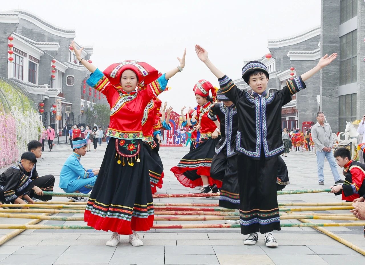 4月14日,壮族三月三节日当天,蒙山县举办“壮族三月三·八桂嘉年华”系列活动。新派武侠风,醉美蒙山情。三月三节日当天,梁羽生公园、天书侠谷《白发魔女》《七剑下天山》等实景演出,吸引了大批身着武侠服、汉服等特色服装的游客前往观看,拍照打卡。蒙山县是武侠小说鼻祖梁羽生的故乡,此次实景节目演出为的是展现蒙山武侠文化魅力,展示多彩地域风情。舌尖上的三月三,蒙山美食等你来。为推广蒙山特色美食,“三月三”期间,蒙山县在永安王城设置美食一条街,有150家左右餐饮业参展,其中涵盖了酒店餐饮业、土特产和小吃等各类美食,节日当天美食一条街生意火爆,人山人海,各类特色美食受到广大市民和游客朋友的喜爱。民族团结一家亲,同唱山歌颂党恩。“唱山歌咧,这边唱来那边和”,蒙山县古榕公园大树下歌声嘹亮,热闹非凡,来自全县各个乡镇的山歌爱好者聚集于此,共同唱响红色主旋律,赞颂美好新生活。台上,一首首旋律优美、意蕴深刻、朗朗上口的山歌,歌颂了党的光辉历史,唱出了群众对美好生活的向往,赢得现场观众阵阵热烈的掌声。