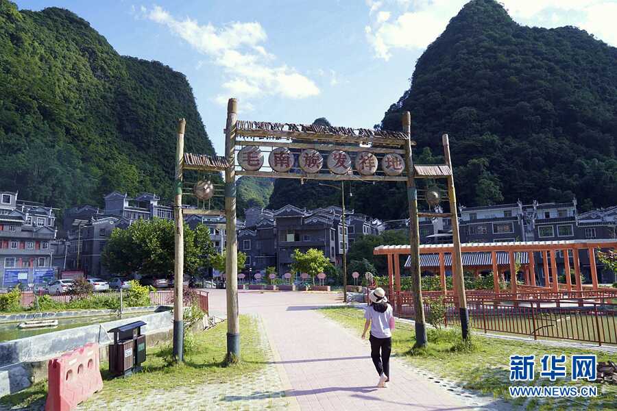 在毛南族发祥地——环江毛南族自治县下南乡中南村南昌屯,“脱贫摘帽不是终点,而是新生活、新奋斗的起点”被写在进村道路一边的围墙上,激励着毛南族群众再创新生活。