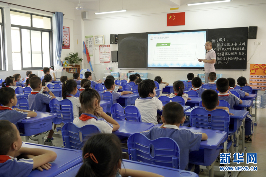 学生们在东兰深圳龙华小学宽敞明亮的教室里上课。